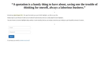 Quote Unquote — это дополнение для Chrome, предназначенное для упрощения процесса доступа к вашим выделениям в Kindle. Этот бесплатный инструмент позволяет пользователям получать выборку своих выделений из Kindle прямо на электронную почту, что делает удобным возвращение к любимым отрывкам без необходимости просматривать приложение Kindle. Функциональность проста, но эффективна, что подходит для заядлых читателей, которые хотят интегрировать свои заметки о чтении в повседневную жизнь.